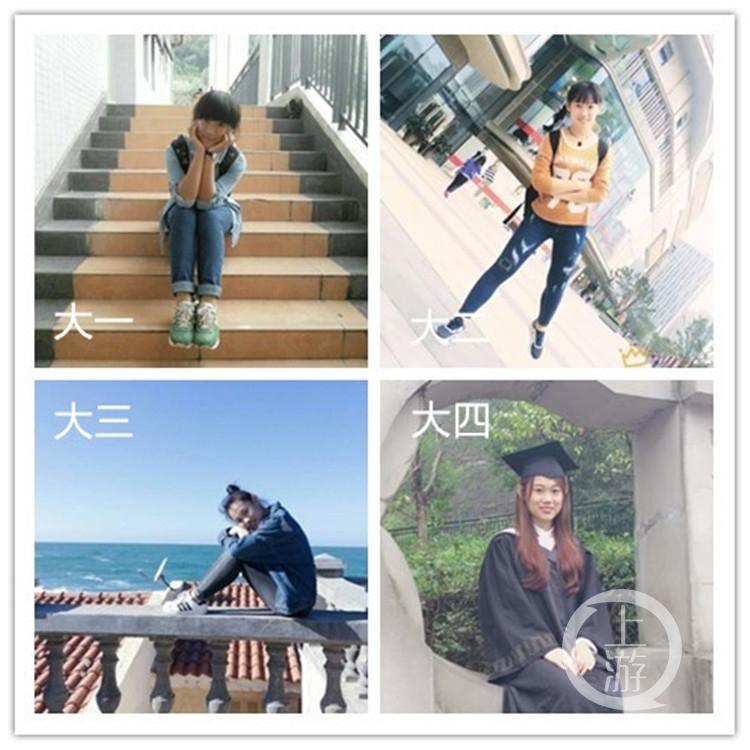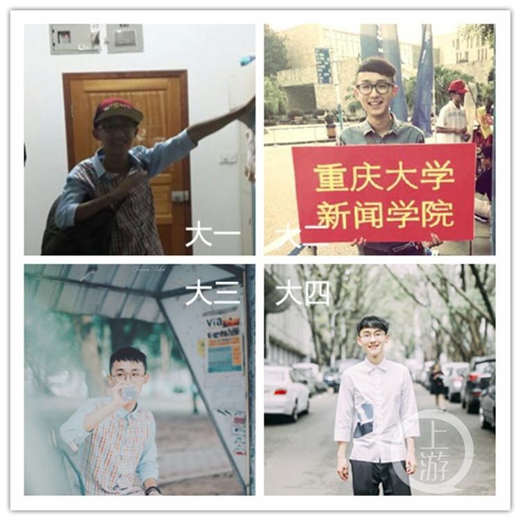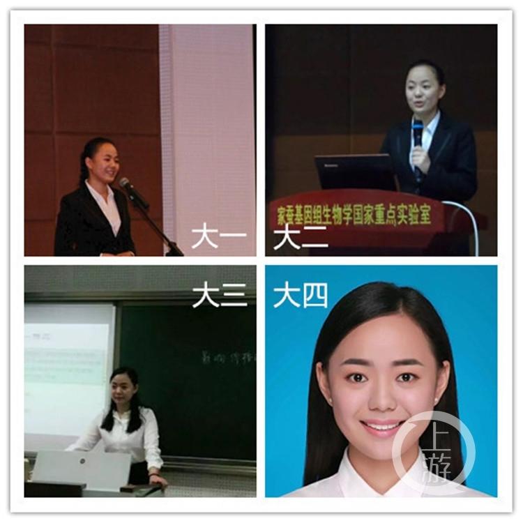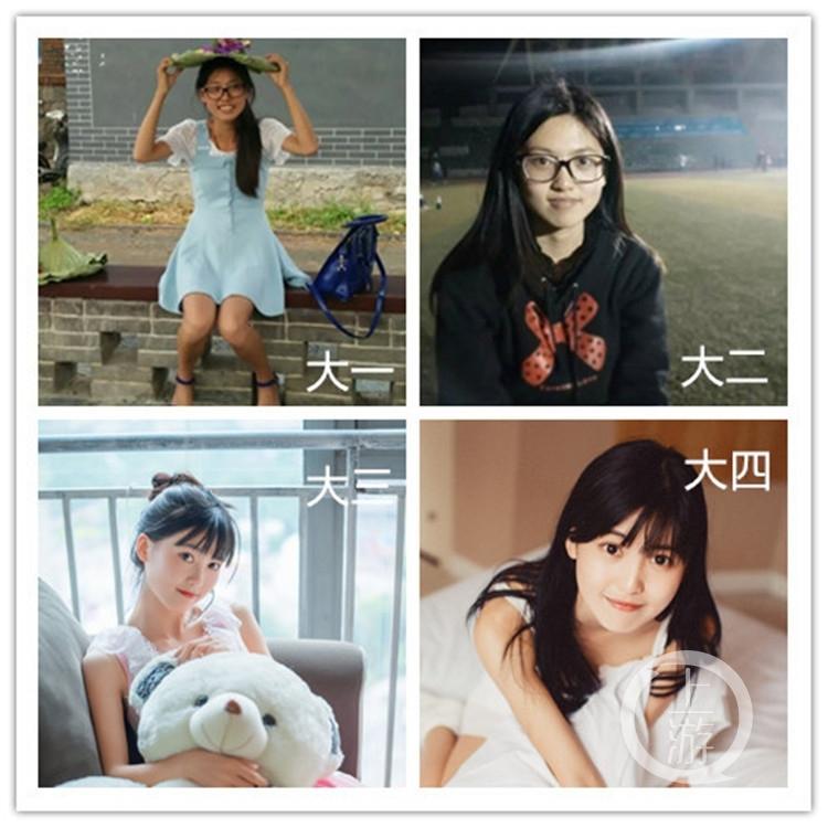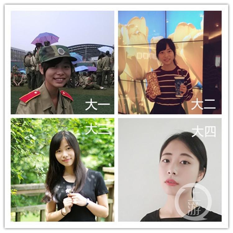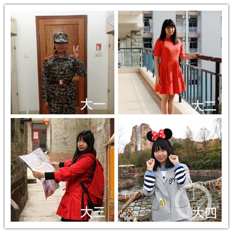 近日,重慶多所高校的畢業(yè)生,用四年的照片來記錄大學(xué)四年的成長痕跡,引發(fā)網(wǎng)友感嘆。圖為西南大學(xué)秦文琰,不僅樣貌如同換了個(gè)人一般,學(xué)習(xí)更進(jìn)一步,現(xiàn)已保送到武漢大學(xué)新聞與傳播學(xué)院。 -