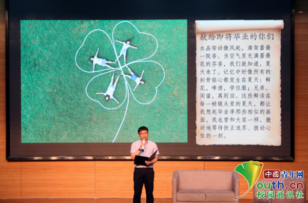 朗讀者張廷宇朗讀原創(chuàng)文字祝福畢業(yè)生。中國青年網(wǎng)通訊員 鄒碧華 提供