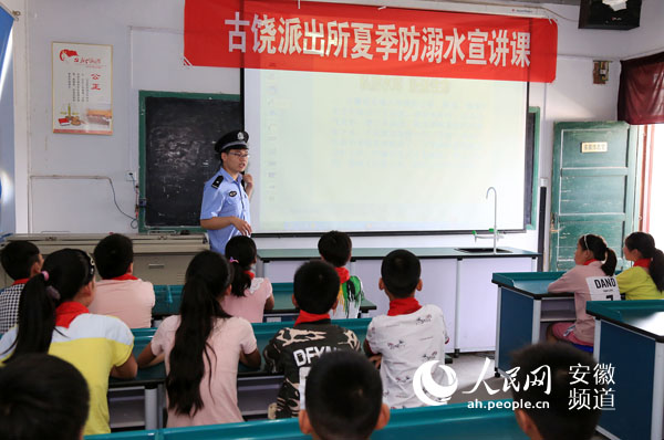 人民網(wǎng)訊 暑期將至,為有效預(yù)防暑假期間農(nóng)村留守兒童溺水事故的發(fā)生,讓孩子們過(guò)一個(gè)平安快樂(lè)的暑假,6月12日,淮北市烈山區(qū)古饒鎮(zhèn)派出所組織民警走進(jìn)新華小學(xué)開(kāi)展暑期安全課關(guān)愛(ài)“留守兒童”主題教育活動(dòng),向留守兒童普及防溺水及自救常識(shí)等知識(shí),勸告孩子們遠(yuǎn)離危險(xiǎn)水域,提高孩子們的暑期安全意識(shí)和自我防護(hù)能力。(梅月 徐祖峰)