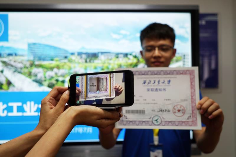 “新生錄取通知書雖然只是一張紙,但精心嵌入的AR技術(shù),是為了通過其展現(xiàn)一種前沿的氣質(zhì)、一種自豪的傳遞;精心編制校情校史及學(xué)科特色等主題內(nèi)容,更是一種感情的投入、一種精神的傳承及一種希望的寄托,將錄取通知書衍生為學(xué)校為新生送去的專屬禮物。AR錄取通知書不僅讓錄取信息‘動’了起來,更通過新媒體新技術(shù)使學(xué)校育人工作‘活’了起來,提前了創(chuàng)新大門的開啟時間,豐富了創(chuàng)新基因的傳承渠道。”西北工業(yè)大學(xué)招生辦公室副主任謝丹說。