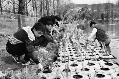 浙江農(nóng)林大學(xué)學(xué)生水上種草清除水污染
