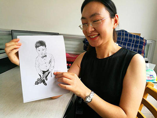 4年前,出于對兩個(gè)女兒的喜愛,陳克拉開始嘗試著用水筆畫人物素描。雖然當(dāng)時(shí)畫得很一般,可孩子們看了仍喜歡得不得了。而真正讓陳克拉將畫畫當(dāng)成一樁“正經(jīng)事”是在去年秋天,那時(shí)她剛接手這批一年級(jí)的新生,適逢學(xué)校實(shí)施“心愿卡”獎(jiǎng)勵(lì)辦法:只要孩子努力去實(shí)現(xiàn)自己的生活和學(xué)習(xí)計(jì)劃,在各方面有進(jìn)步,都能獲得心愿卡。