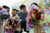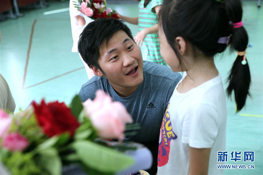 剛剛從幼兒園畢業(yè)的孩子們回來(lái)看望張鳴川(右二)和他的同事們(9月8日攝)。新華社記者 張玉薇 攝 -