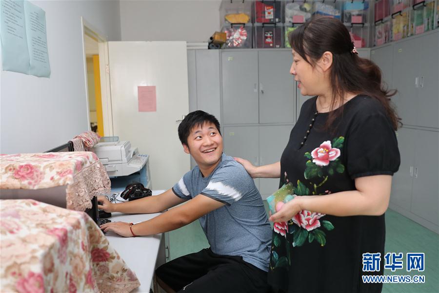 張鳴川(左)在幼兒園資料室與園長(zhǎng)交流工作(9月8日攝)。新華社記者 張玉薇 攝 -