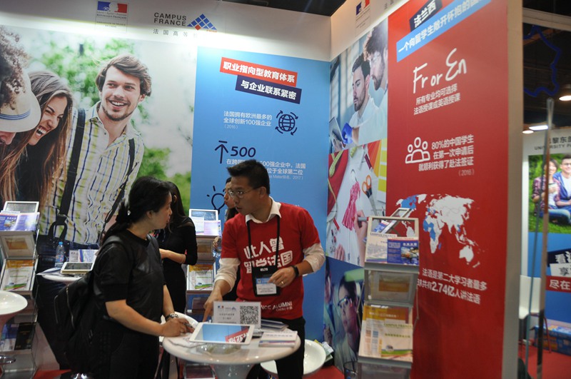 人民網(wǎng)北京10月23日電 近日,由中國教育國際交流協(xié)會主辦的2017中國國際教育展在北京國家會議中心開幕。來自加拿大、法國、德國、意大利、日本、英國和美國等近40個國家和地區(qū)的510余所海外院校參加展會,向中國學生和家長介紹本國的招生現(xiàn)狀,并提供現(xiàn)場面試。