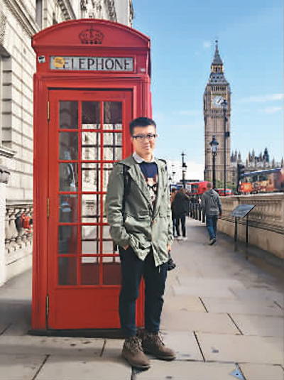 到達(dá)倫敦的第二天,龍雨青急忙趁好天氣跑去大本鐘下的紅色電話亭這一地標(biāo)留影,并發(fā)給爸媽報了聲平安。