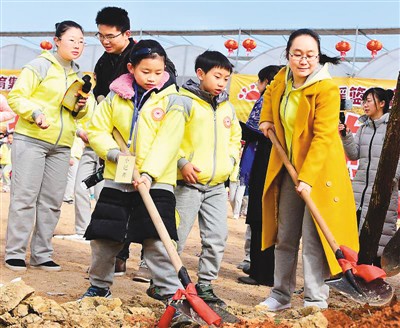 湖南長沙:孩子們體驗迎春禮,2月4日是農(nóng)歷二十四節(jié)氣之首的“立春”,湖南長沙諾貝爾搖籃少年兒童農(nóng)場舉辦傳統(tǒng)迎春禮等活動,再現(xiàn)長沙消失100多年的迎春禮場面。圖為孩子們在種樹。本報記者 趙樹宴攝