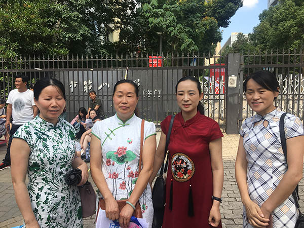 “旗袍就意味著‘旗開得勝’啊,相信我的孩子一定能考出好成績。”羅奇也是“旗袍媽媽”中的一員,今天是第一次穿旗袍。“周圍的親戚朋友都說穿旗袍討個好彩頭,我就趕在高考前專門去訂制了一件”。