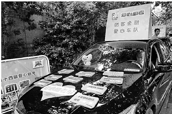 義務(wù)服務(wù)的出租車每年都要來,許多司機(jī)專職為高考送考服務(wù)N年,他們往往引以為榮,還會(huì)在校門口留下帥氣的自拍。