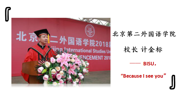 你們常說BISU應該讀為“Because I see you”,在場的2048位畢業(yè)生,今天這個珍貴的日子,我想請大家跟母校同頻共振,我說“BISU!”,請大家一起說“Because I see you!”!癇ISU”四個字母也會因為你們永不休止的追求而更加響亮,I see you means more than I know you,I see you even means more than I love you,即使母校不夠完美,相信在你們心中依然只有母校小而最美!