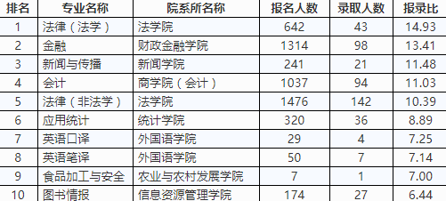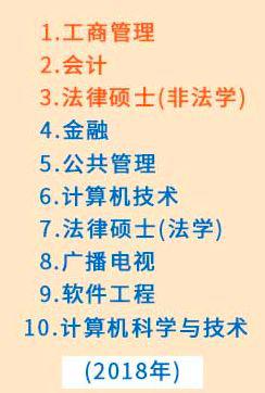 由此可見(jiàn),工商管理、會(huì)計(jì)、法律碩士(非法學(xué))連續(xù)數(shù)年成為報(bào)考專業(yè)的前三甲,依然是最熱門(mén)的專業(yè)。