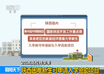 陜西省內(nèi)集中連片特困地區(qū)、國家扶貧開發(fā)工作重點縣、革命老區(qū)的家庭經(jīng)濟困難大學新生,入學前可申請新生入學資助項目。就讀本省院校的每人500元,就讀省外院校的每人1000元。同時,在陜西省地方高校就讀的建檔立卡家庭的大學本專科學生,每人每年還可領取6000元的助學金生活補助。