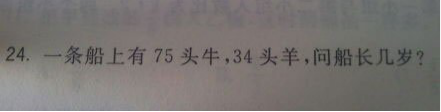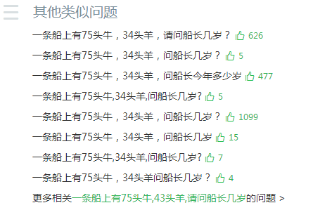 而從小學(xué)生的思維出發(fā),則是將題干中的75與34這兩個(gè)數(shù)字進(jìn)行加減乘除運(yùn)算,75減去34等于41,是在1到100之間,所以,多數(shù)人會(huì)覺得船長(zhǎng)的年齡可能是41歲。