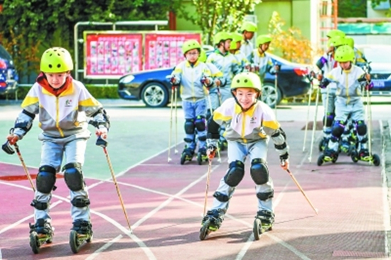 明年北京市市級冰雪示范校的總數(shù)將增至200所。每所特色校將輻射2至3所學(xué)校,共同開展冬季奧林匹克教育工作。昨日,已經(jīng)被評為冰雪示范校的和平里第四小學(xué)率先開啟“冬奧會”。