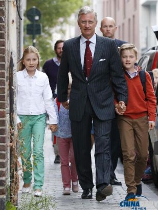當(dāng)?shù)貢r(shí)間2013年9月2日,比利時(shí)布魯塞爾,開學(xué)季到來(lái),比利時(shí)國(guó)王菲利普陪同兒女到學(xué)校報(bào)到。