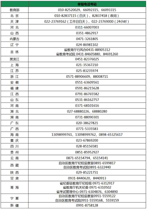 關(guān)鍵詞:教育部;高考;舉報(bào)電話;教育行政部門;招生考試;