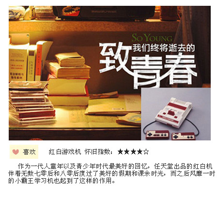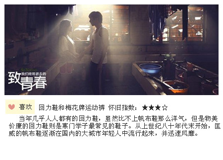 趙薇首次執(zhí)掌導(dǎo)演的電影《致我們終將逝去的青春》公映后票房不菲,該影片據(jù)同名網(wǎng)絡(luò)小說 改編,背景放在九十年代的大學(xué)校園,為了契合時(shí)代背景,主創(chuàng)團(tuán)隊(duì)精心挑選了獨(dú)屬于當(dāng)時(shí)的特定物 件向那個(gè)時(shí)代致敬:上下鋪的宿舍、隨處可見的硫化帆布鞋、時(shí)髦發(fā)型,紅白游戲機(jī)、BP機(jī)以及片中 的插曲等都充滿了濃濃的懷舊氛圍。【詳情】...