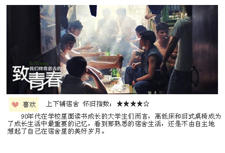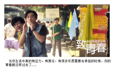 正如故鄉(xiāng)是用來懷念的,青春是用來追憶的,當(dāng)你懷揣著它的時(shí)候,它可能一文不值,只有它全部耗盡的時(shí)候,再回過頭看,一切都有了意義,每個(gè)人或多或少都能在《致青春》的電影里找到自己當(dāng)年的影子,也許會(huì)因?yàn)橐痪湓,一個(gè)場景,觸發(fā)那些在我們心底不曾看見的東西, 我們的青春年華正如這一幕幕的電影畫面,慢慢清晰,慢慢模糊。 而在我們的內(nèi)心,深切地希冀著阮莞墓碑上的那四個(gè)字:青春不朽!