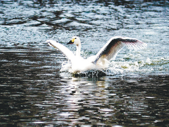 平陸黃河濕地位于秦晉豫黃河金三角地帶。這里背風(fēng)向陽、氣候溫暖,6000多公頃的濕地都是大天鵝棲息的樂園。從每年10月底開始,天鵝陸續(xù)來到這里,一直待到第二年3月。高峰時(shí)天鵝數(shù)量達(dá)1萬余只,這里因此被稱為“中國大天鵝之鄉(xiāng)”。