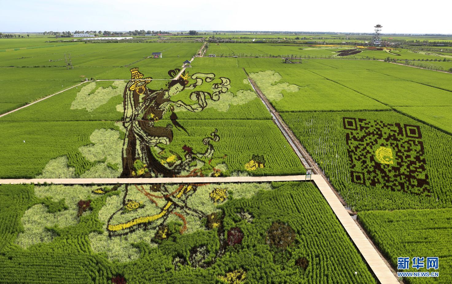 7月24日在沈陽市興隆臺(tái)錫伯族鎮(zhèn)稻夢(mèng)空間園內(nèi)拍攝的稻田畫《美容大米》。 新華網(wǎng) 姜冰攝 -