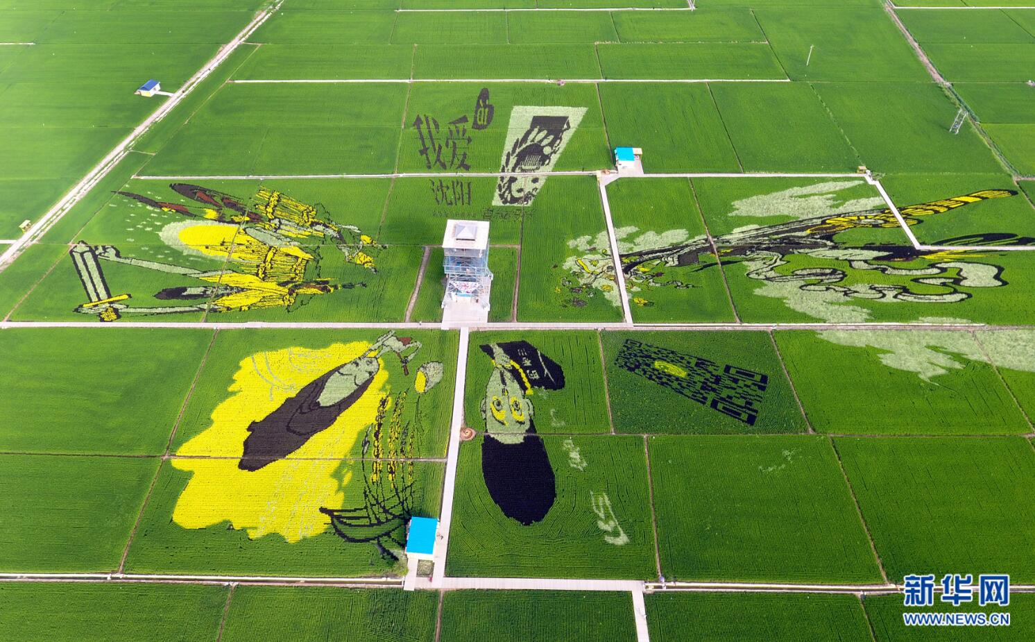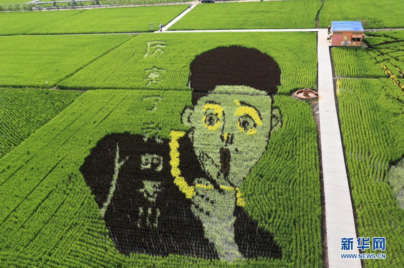 7月24日在沈陽市興隆臺(tái)錫伯族鎮(zhèn)稻夢(mèng)空間園內(nèi)拍攝的稻田畫《厲害了我的哥》。 新華網(wǎng) 姜冰攝 -