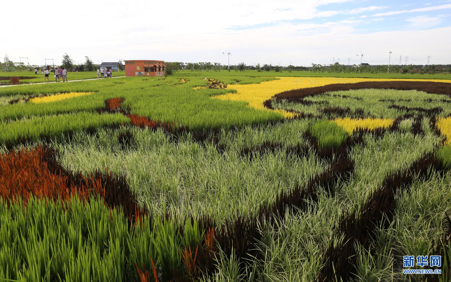 圖為在沈陽市興隆臺(tái)錫伯族鎮(zhèn)稻夢(mèng)空間園內(nèi)拍攝的不同顏色和品種水稻組合而成的稻田畫局部。新華網(wǎng) 姜冰攝 -