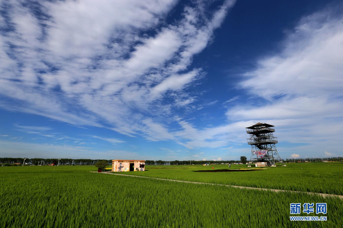 沈陽市興隆臺(tái)錫伯族鎮(zhèn)稻夢(mèng)空間風(fēng)景如畫。新華網(wǎng) 姜冰攝