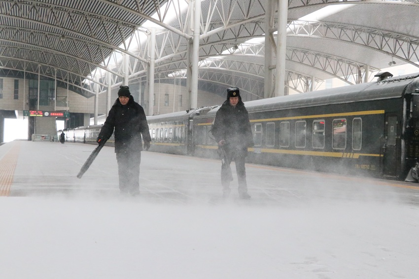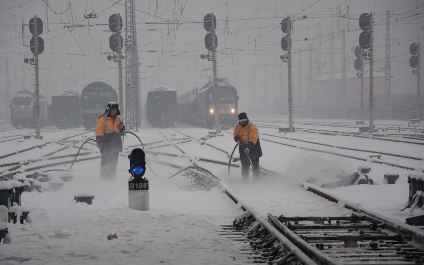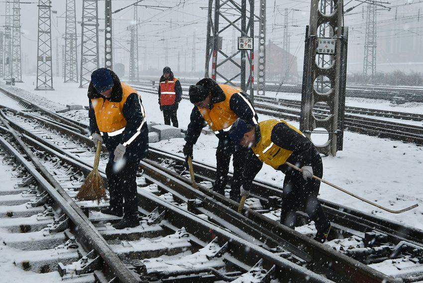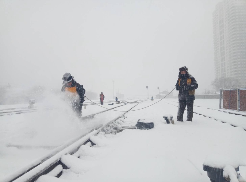 站車、工務(wù)部門成立100多個除雪小分隊,分赴沿線重點部位、關(guān)鍵處所,做到風(fēng)雪不停除雪不止。同時,組織休班人員值守火車道口,和當(dāng)班道口員一起對道口鋪面鏟冰除雪,確保了過往車輛和行人的安全。電務(wù)、供電部門安排專人“死看死守”哈大、長圖、沈吉等降雪較大的線路區(qū)段,密切關(guān)注信號設(shè)備運行狀況,及時發(fā)現(xiàn)和處理因降雪冰凍造成的信號通信設(shè)備故障,確保了設(shè)備正常運轉(zhuǎn)。 -