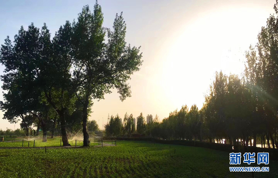 初夏的沈陽(yáng)市陽(yáng)光和煦 ,氣候宜人,位于沈陽(yáng)市渾河畔的奧林匹克公園風(fēng)景如畫,每天都吸引大量市民前來(lái)賞景、晨練、垂釣,這里已成為城市中一道靚麗的風(fēng)景線。圖為市民清晨在奧林匹克公園中散步。新華網(wǎng) 姜冰攝 -