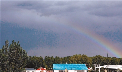 5月22日,春雨在沈城淅淅瀝瀝下了一個(gè)白天。傍晚時(shí)分,雨漸歇,天空中高掛起慵懶的彩虹,路面上的積水映射著藍(lán)天、白云,那么美好,讓人們不用遠(yuǎn)眺就能收獲這抹春色。孫海攝 -