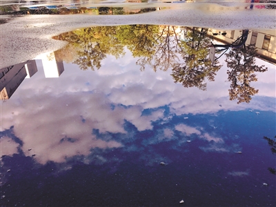 5月22日,春雨在沈城淅淅瀝瀝下了一個(gè)白天。傍晚時(shí)分,雨漸歇,天空中高掛起慵懶的彩虹,路面上的積水映射著藍(lán)天、白云,那么美好,讓人們不用遠(yuǎn)眺就能收獲這抹春色。常晟罡 攝