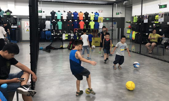 連續(xù)高溫下,去商場(chǎng)免費(fèi)“蹭”空調(diào)成了很多市民的選擇。晚上7點(diǎn)多,氣溫仍然顯示33℃,田先生夫婦帶著孩子到渾南區(qū)一家體育用品商場(chǎng)逛逛?吹降纳虉(chǎng)更像是一個(gè)室內(nèi)兒童活動(dòng)中心——不少小朋友在試騎滑板車、平衡車、踢球,家長們推著嬰兒車,拎著水壺零食。