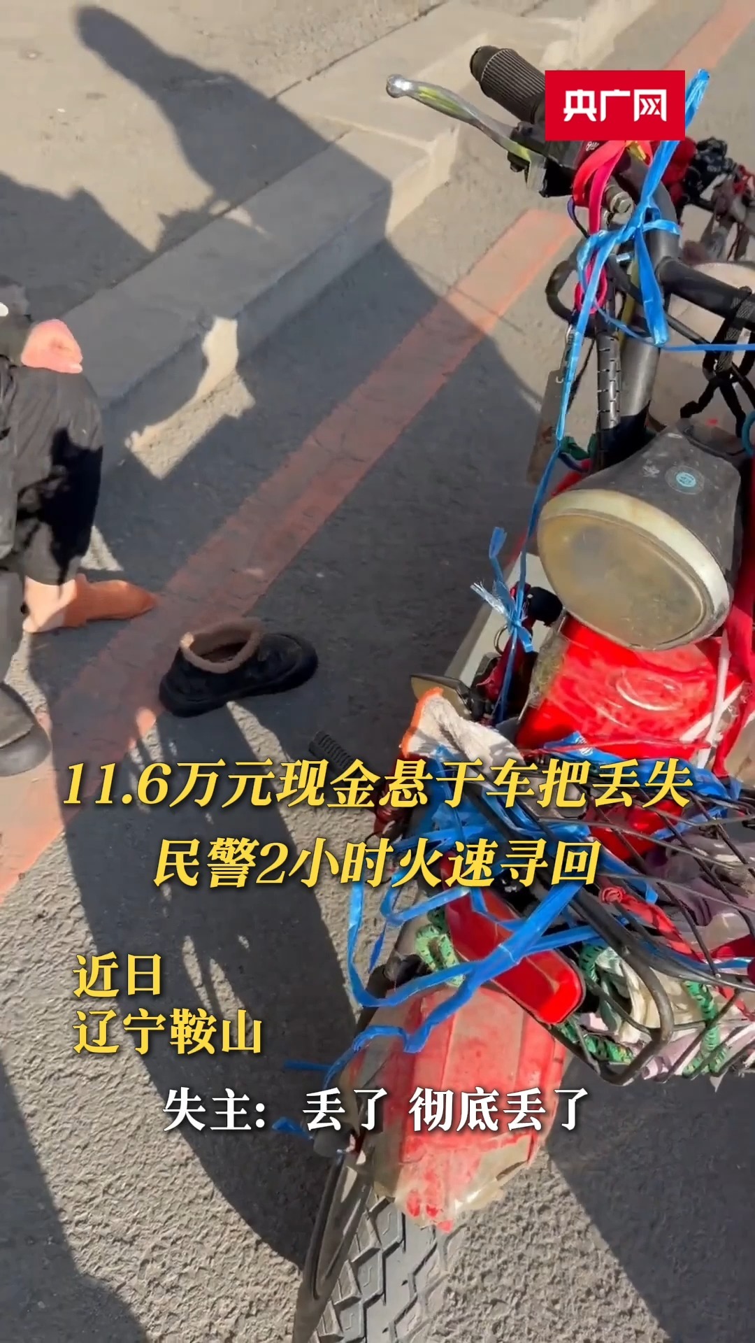近日,遼寧鞍山一位老人將裝有11.6萬余元現(xiàn)金的塑料袋掛在車把上,卻在騎行時不慎掉落,民警幫助老人把攢了3年多的錢找了回來。