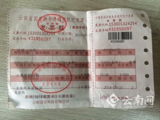昆明北部汽車客運(yùn)站副站長丁虎告訴記者:“不論是在客運(yùn)站售票廳,還是在其他的車票代售處,昆明五個(gè)汽車客運(yùn)站所用車票統(tǒng)一都是云南省國家稅務(wù)局通用機(jī)打發(fā)票,手寫車票絕對是假的。”