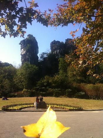 桂林的標(biāo)志“駱駝山”前,古楓樹更是身披金甲,偶爾初現(xiàn)艷紅,更顯秋的意境,宛若一幅色彩絢麗的油畫,使得置身在這仿佛童話世界中的人們,紛紛拿出相機(jī)、手機(jī)記錄下這醉人的美景。11-12月,賞葉的效果將越來越佳,絢麗秋色實(shí)在值得期待。