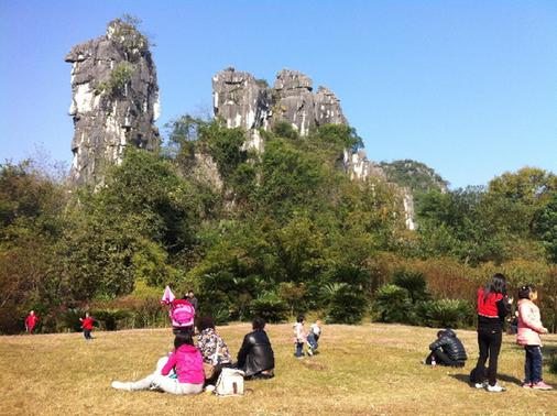 桂林七星景區(qū)的駱駝山前,人們悠然的盡享安逸陽(yáng)光。