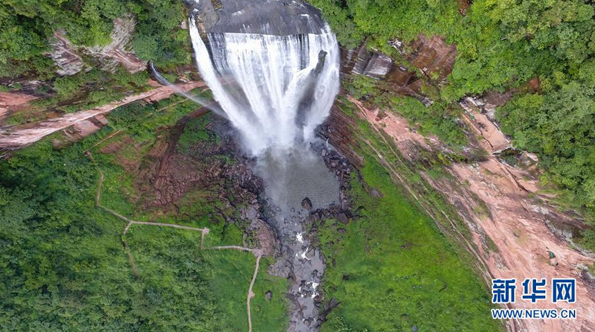 這是9月7日在重慶市江津區(qū)四面山景區(qū)拍攝的望鄉(xiāng)臺(tái)瀑布。
