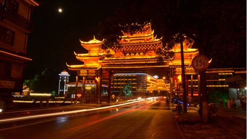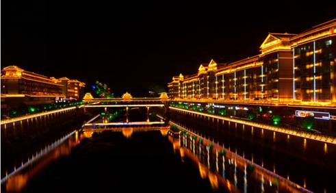 邂逅于白天的吃吃喝喝,玩玩鬧鬧。夜晚來臨,靜下來,觀賞通道的夜景——一江穿九橋。