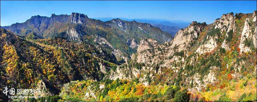 秋臨霧靈,“天高云淡,望斷南飛雁”,漫山遍野的秋菊花,在秋風(fēng)中格外嬌艷而獨(dú)領(lǐng)風(fēng)騷,花楸、接骨木的果實(shí)在萬(wàn)叢綠中透出晶瑩的紅艷。然而最美的要數(shù)那層林盡染、流金溢彩的霧靈秋色了。