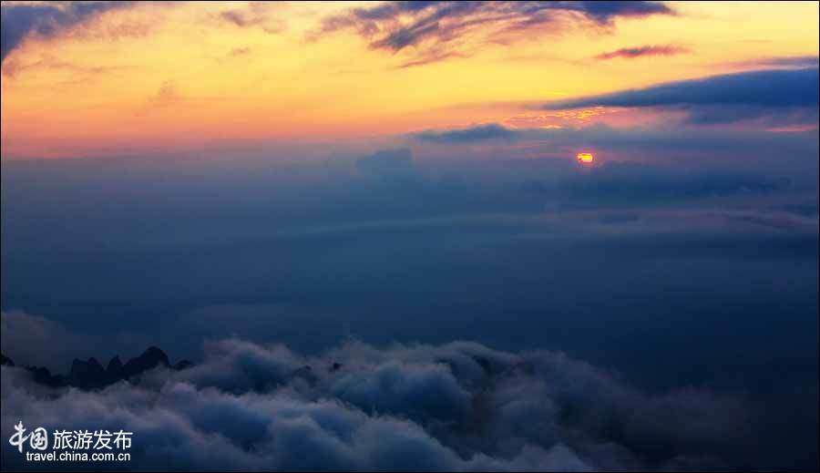 秋天的雨水相對較少,因此,云海出現(xiàn)的概率也少一些。但降雨過后,黃山則常常出現(xiàn)波瀾壯闊的云海景觀,云海飄逸靈動,峰石若隱若現(xiàn),一幅幅布局詭異、構圖奇特、節(jié)奏變幻、色彩豐富、氣勢磅礴的立體畫呈現(xiàn)在面前。(葉永清)