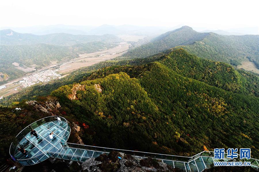 9月26日,游客在黑龍江帽兒山國家森林公園的玻璃棧道上觀賞游玩。