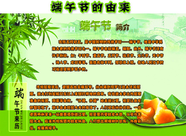 對于端午節(jié)的由來,各本其源,有屈原說、伍子胥說、曹娥說、三代夏至節(jié)說、惡月惡日驅(qū)避說、吳越民族圖騰祭說等。其中,在民間影響最大、范圍最廣的看法,認為端午節(jié)是為了紀念投汨羅江而死的忠臣屈原。