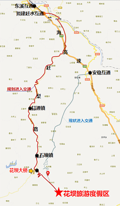 重慶外環(huán)高速巴南站沿蘭海高速到安穩(wěn)下道,上盤山公路經(jīng)過萬隆村到達(dá)重慶花壩旅游度假區(qū),車程約2.5小時。預(yù)計(jì)2017年花壩大橋建成通過蘭海高速趕水互通,經(jīng)過趕梨路上花壩大橋到達(dá)景區(qū)只有1.2小時到達(dá)。