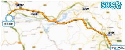 新開898路,首末站:涿鹿-地鐵朱辛莊站,接駁地鐵8號(hào)線、昌平線。(營(yíng)業(yè)時(shí)間:涿鹿5:00-17:00,朱辛莊公交場(chǎng)站7:00-17:00。)