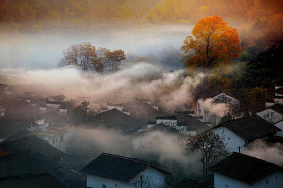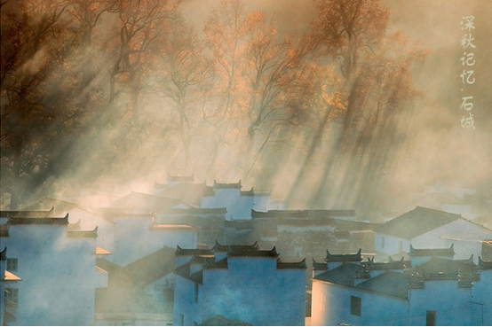 石城,最佳視覺時(shí)間:(早晨)5:30–9:30分。在這里數(shù)十棵百年紅楓與白墻黑瓦的徽式古村落,百姓日出而作、日落而息的淳樸生活,清晨的裊裊炊煙、山間繚繞的云霧、鋪滿紅葉的古驛道相互融合;山水相映,色彩配合,晨昏變化,動(dòng)靜相襯體現(xiàn)得淋漓盡致,構(gòu)成一幅幅怡神悅性的絕世山水畫。