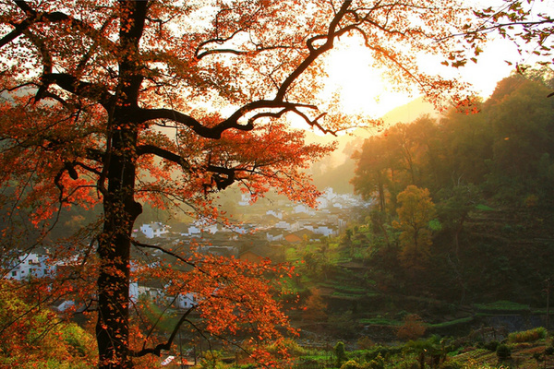 11月中旬至12月上旬,是欣賞婺源秋色的最佳時(shí)間。此時(shí)的婺源鄉(xiāng)村正值秋濃,那些遍布于村頭鄉(xiāng)間及山野溪邊的古木老樹紛紛開始變色換妝,一棵棵楓樹也突現(xiàn)出英雄紅色,恣意盡顯其風(fēng)流于一時(shí)。古老的村落粉墻黛瓦,清澈的溪水小橋人家,秋后的田野阡陌縱橫,火紅的楓葉相映生輝。晨曦暮靄中,炊煙裊裊,雞鳴犬吠,此情此景就是婺源鄉(xiāng)村的秋天,也正是我們尋找中的理想意境。
