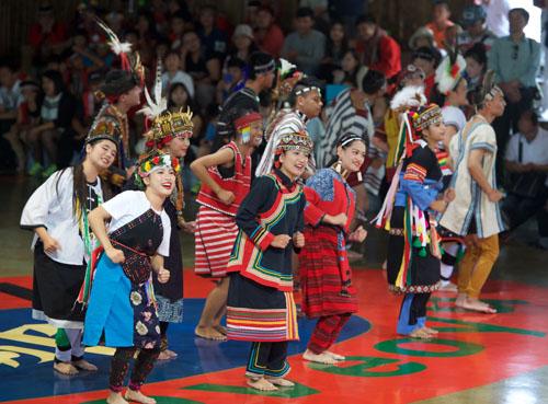 阿里山山美部落里正在進(jìn)行“鲴魚節(jié)”歌舞表演(2015年11月14日攝)。新華社發(fā)