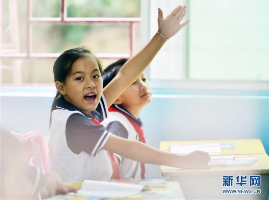 8月31日,貴州省劍河縣城關(guān)第二小學(xué)一名二年級(jí)學(xué)生在新學(xué)期課堂上舉手回答問題。新學(xué)期,每個(gè)學(xué)生感受都不同,有初來乍到的新奇,有早起上課的困倦,有與小伙伴重逢的喜悅,也有與家人短暫離別的不舍……開學(xué)的表情,豐富多彩。新華社發(fā)(楊文斌攝)