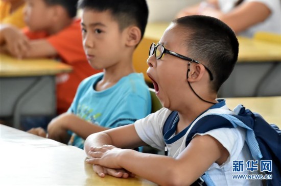 8月30日,江蘇省揚(yáng)州市花園小學(xué)一名一年級(jí)新生坐在座位上打哈欠。新學(xué)期,每個(gè)學(xué)生感受都不同,有初來乍到的新奇,有早起上課的困倦,有與小伙伴重逢的喜悅,也有與家人短暫離別的不舍……開學(xué)的表情,豐富多彩。新華社發(fā)(莊文斌攝)