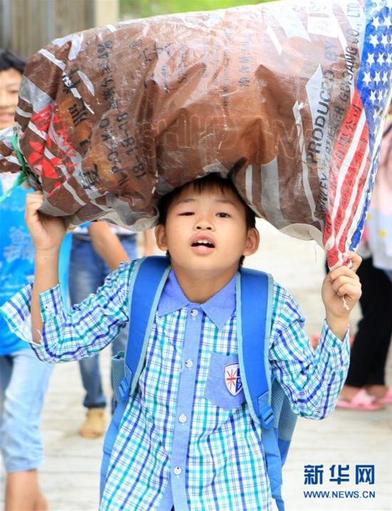 8月31日,廣西河池市鳳城鎮(zhèn)林蘭小學(xué)學(xué)生谷相貴頭頂行李回校上課。新學(xué)期,每個(gè)學(xué)生感受都不同,有初來乍到的新奇,有早起上課的困倦,有與小伙伴重逢的喜悅,也有與家人短暫離別的不舍……開學(xué)的表情,豐富多彩。新華社發(fā)(周恩革攝)